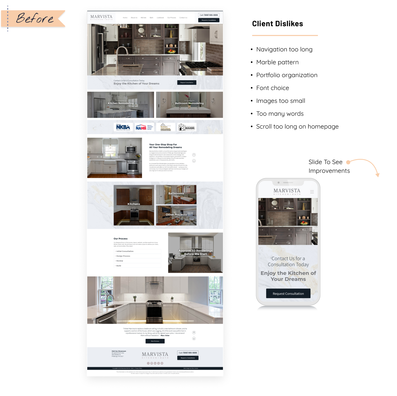 Marvista Design Build required a modern, high-end website that reflected the caliber of their architectural and construction work. With over 50 new projects completed in the past two years and no clear portfolio structure in place, our team was tasked with creating a scalable solution to showcase their growing body of work.